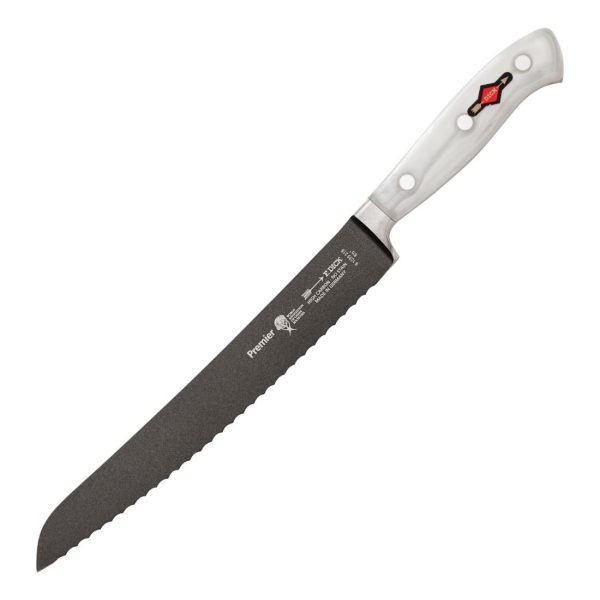 Premier knives with a hygienic non-stick coating containing ceramic particles to make slicing effortless. Attractive plastic handle in mother-of-pearl optic which is easy to grip. The knife series Premier WACS has been developed in cooperation with Frieder Dick and the WACS for international professional chefs.