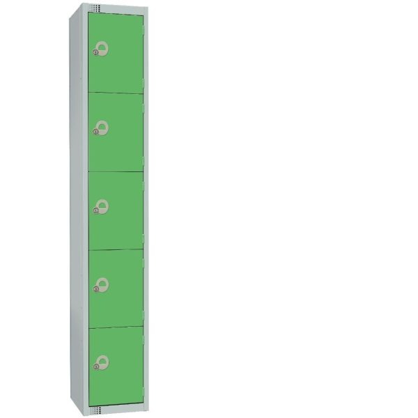 Elite Five Door Coin Return Locker with Sloping Top Green