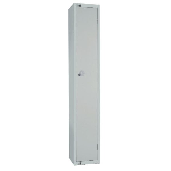 Robust quality steel locker with camlock, welded plinth between doors to improve inter-compartment security and reinforced door.