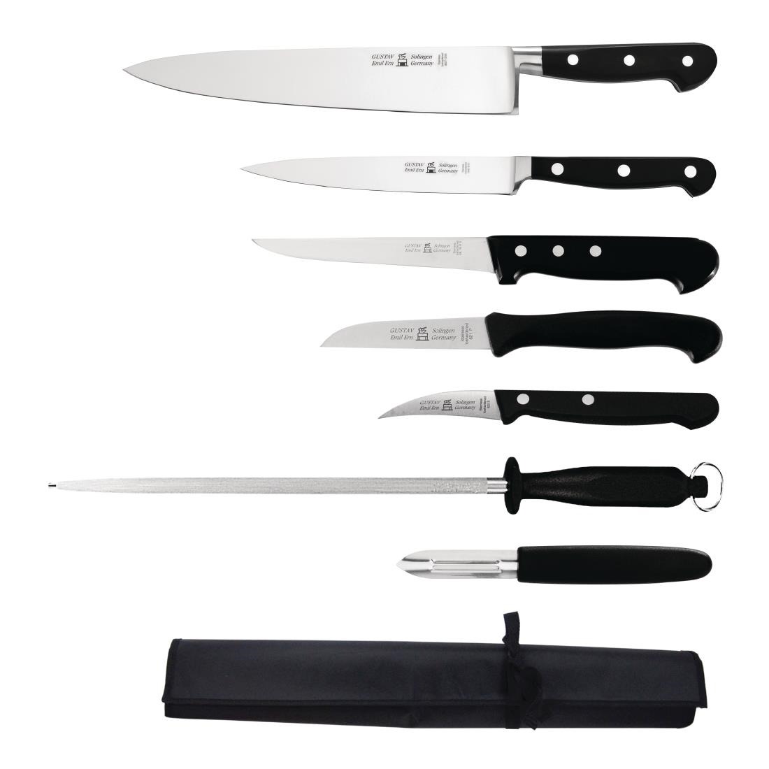 This knife set includes 7 carefully chosen Gustav Emil Ern knives which will be an asset to any professional chef. Supplied with a nylon wallet to protect and transport your knives.