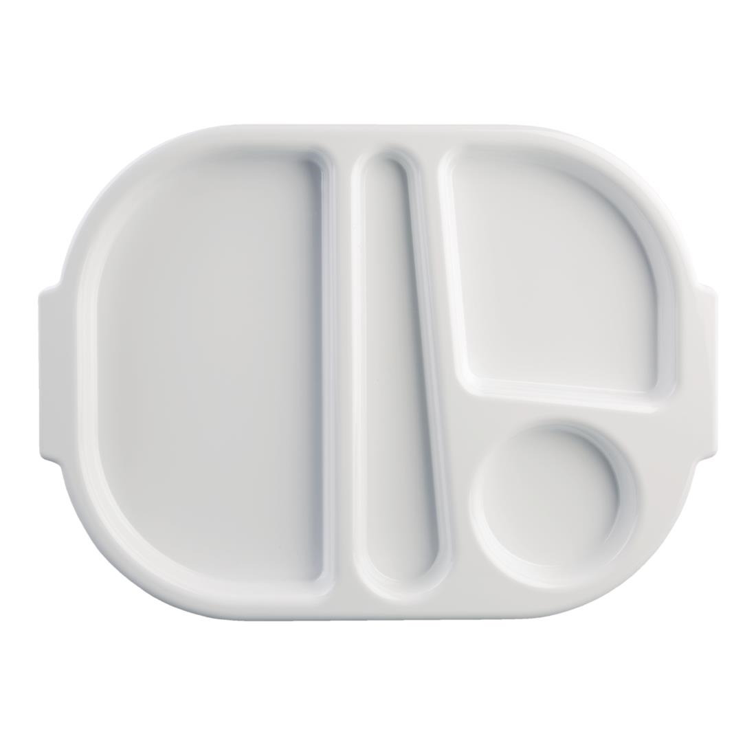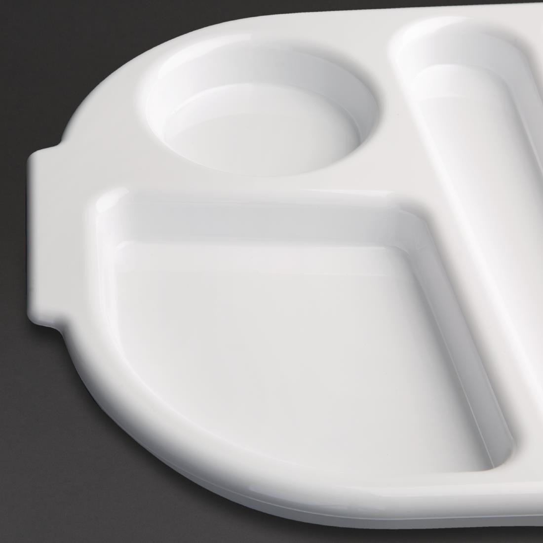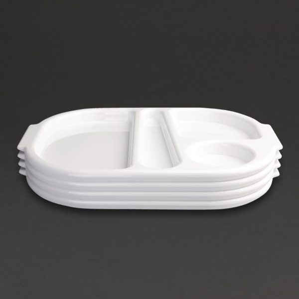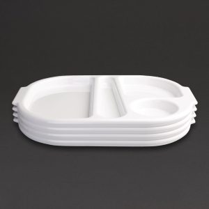 Shatterproof and stackable polycarbonate trays ideal for use in hospitals, schools and carehomes.